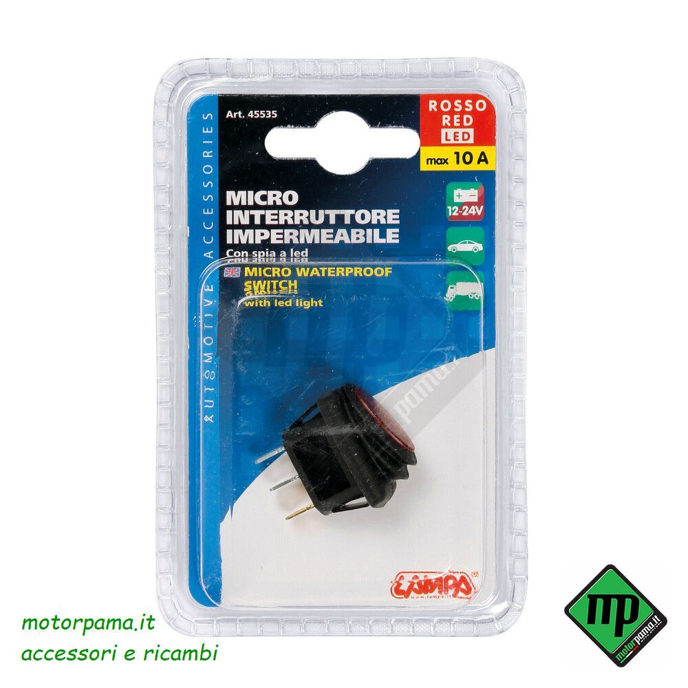 Micro interruttore impermeabile con spia a Led - 12/24V - ROSSO